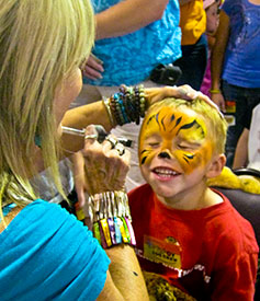 and glitter. With her staff of trained Zoo Crew painters, any event, including large